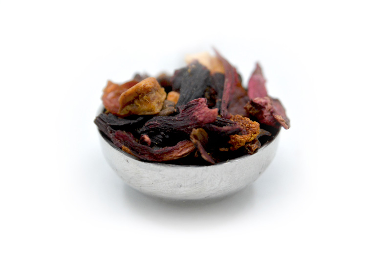 Hibiscus, rosehips, apple pieces, orange peels, chopped almonds, cinnamon, flavour.