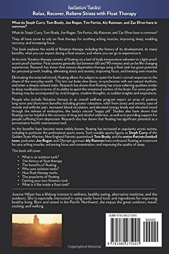 They all have come to rely on float therapy for soothing aching muscles, improving sleep, enabling recovery, and increasing focus. This book explores the world of flotation therapy, including the history of its development, its many benefits, what you can expect during a float session, and where you can go to experience it. At its root, flotation therapy consists of floating on a bed of body temperature saltwater in a light-proof, sound-proof chamber. Float sessions generally last between 60 and 90 minutes and can be life-changing experiences. Research has shown that sensory deprivation therapy using a float tank has great potential for personal growth, healing, alleviating stress and anxiety. improving focus, and treating sore muscles. Eliminating the external stimuli, floating allows the subject to quiet the brain’s normal responses to the chaos of the everyday world. This lets our brain slow down, re-synchronize with our natural rhythms, and enter a deeply relaxed state. Research has shown that floating has stress-relieving qualities similar to deep meditation in terms of its ability to quiet the emotional centers of the brain. For some people, floating may be accompanied by vivid imagery, creative thoughts, or sudden insights and inspirations. People who include flotation therapy in an overall wellness program report an array of positive long-term and short-term benefits including greater relaxation, relief from stress and anxiety, ease of muscle and arthritic pain, increased blood circulation, and elevated energy levels and elevated mood through the release of endorphins, the body’s natural "happy pill.” Studies also have shown that floating can be helpful in the recovery of drug and alcohol addiction, as well as in providing support for people suffering from depression. Research also has shown that floating has significant potential as a preventative health maintenance tool. As the benefits have become more widely known, floating has increased in popularity across society, including in particular the professional sports arena.Such notable sports figures as Steph Curry of the Golden State Warriors, New England Patriots quarterback Tom Brady, and the entire Patriots football team, podcaster Joe Rogan, and Olympic gymnast Aly Raisman have embraced floating as treatment for sore aching muscles, enhancing focus and concentration, and improving the quality of sleep.